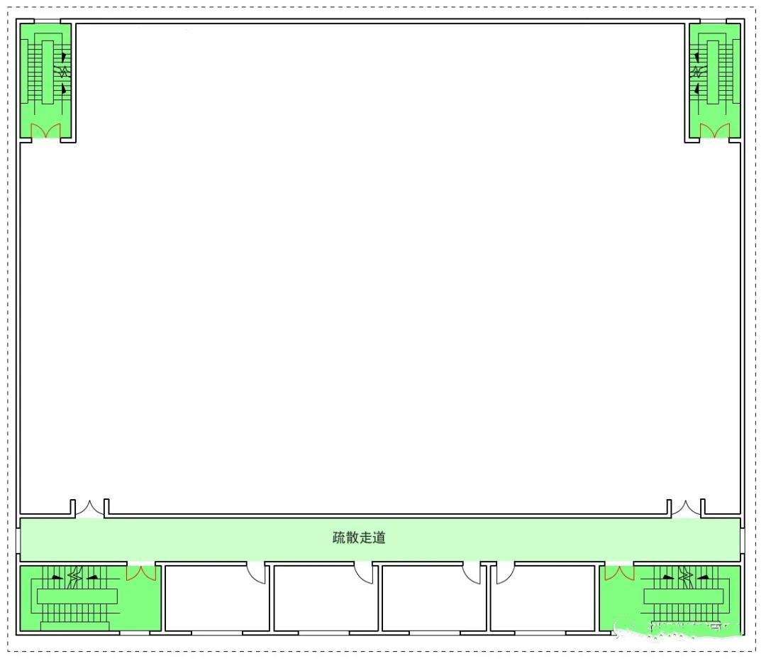 在疏散路徑中,疏散走道作為緩沖空間,能有效保證疏散樓梯間和前室的安全性。(圖示1、圖示2)