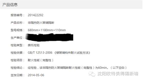 2015.5.1頒布新的《建筑設計防火規范》規定消防產品,如鑲玻璃構件等產品防火性能需要是系統的,通俗的說,玻璃、框架、五金、膠條等構件均要求滿足耐火完整性要求,單獨構件的防火檢測報告不具效律!