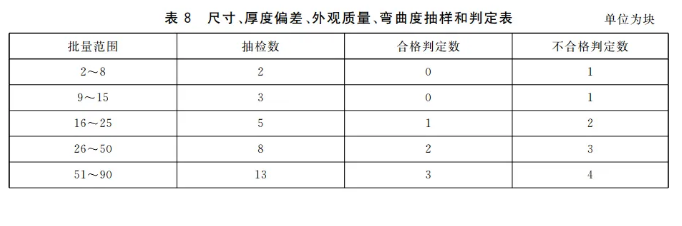 檢驗(yàn)項(xiàng)目為尺寸、厚度及偏差、外觀質(zhì)量和彎曲度。