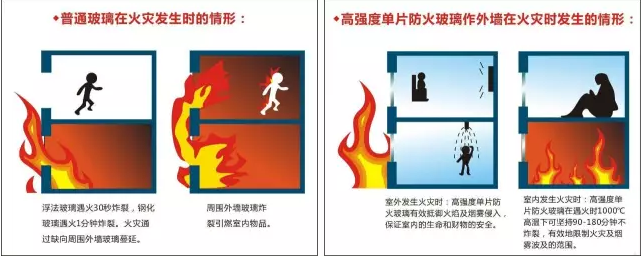 適用于外窗、外幕墻時,設計方案應考慮防火玻璃與PVB夾層玻璃組合使用。適用范圍:建筑物房間、走廊、通道的防火門窗及防火分區和重要部位防火隔斷墻。