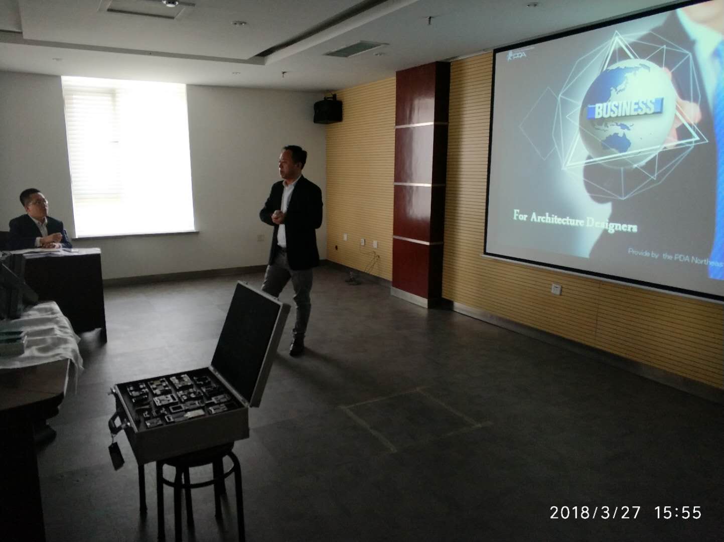 這次會議在保利會議室舉行,由我們PDA公司東北分公司的于永力先生演講主持,題目為《建筑設計防火規范》。主要包括以下幾方面:防火玻璃框架系統的基本概念、設計原則及在建筑設計當中的應用、防火檢驗報告應用的正確使用方法和檢驗方法。
